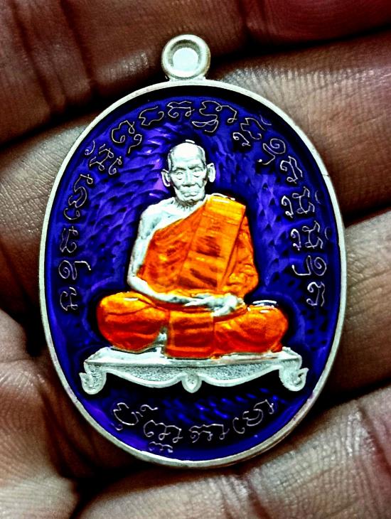 หลวงพ่อพัฒน์ เหรียญเจริญพร 2 เนื้อเงินบริสุทธิ์ ลงยาพื้นม่วง ลงยาจีวร NO.๖๗๔๐