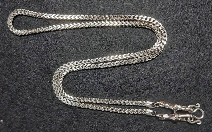 สร้อยสแตนเลสลายสี่เสา หนา 3.3 มิล ยาว 25 นื้ว พร้อมสปริงก้ามปูสแตนเลส1คู่ สำหรับห้อยพระ2ห่วง3ห่วง และห่วงตัวM ไว้ห้อยพระ1องค์ .. |