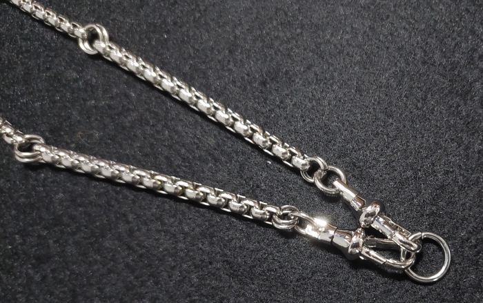 สร้อยสแตนเลสผ่าหวาย หนา 4.2 มิล ยาว 26 นื้ว พร้อมสปริงก้ามปูสแตนเลส1คู่ .. |