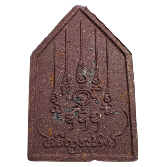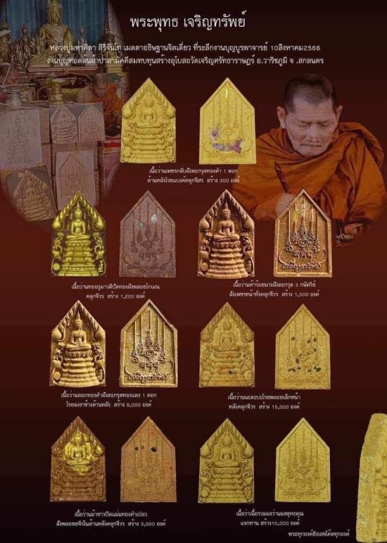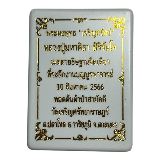 พระผงพุทธ รุ่น เจริญทรัพย์ เนื้อว่านทองอุมาวดีปิดแผ่นทองคำเปลว ฝังพลอยโกเมนคลุกจีวรหลวงปู่มหาศิลา สิริจันโท ปลุกเสก สร้าง 1200 องค์ หมายเลข 634 กล่องเดิม |