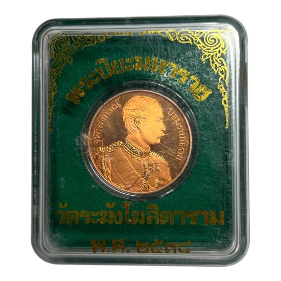 เหรียญพระปิยะมหาราช เนื้อทองแดงนอก ขัดเงาพ่นทราย บล็อกฮังการี่ ขนาด 3 เซน วัดระฆังโฆสิตาราม ปี2538 ตลับเดิม |