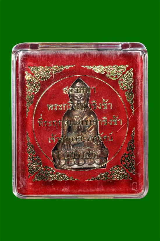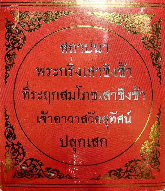 พระกริ่งเสาชิงช้า ที่ระฤกสมโภชเสาชิงช้า วัดสุทัศน์ พิธีใหญ่พระ 108 รูป เสก 9 วัน 9 คืน ราคาจอง ทำบุญ 3999-บาท (ตามหลังกล่อง) เนื้อนวะโลหะเต็มสูตร พิธีใหญ่ |