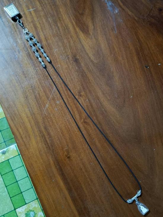 สร้อยเม็ดเงินแท้เก่า สั่งทำ ยาว 36 นิ้วสวมหัวได้ หนัก 23 กรัมกว่า สวยสมบูรณ์ แขวงพระด้านหลังได้