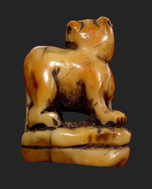 *เคาะแรกแดง*เขี้ยวแกะรูปเสือสวย มีจารเก่าเดิม ไม่ทราบที่
