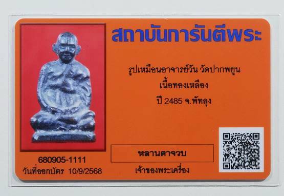รูปหล่อพระอาจารย์วัน วัดปากพยูน จ.พัทลุง ปี2485 ครับ