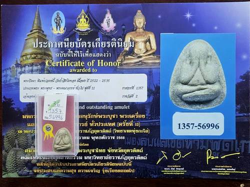 พระปิดตาพิมพ์ปลดหนี้ วัดถ้ำสิงโตทอง เนื้อผง ปี2535 ติดรางวัลที่2 |
