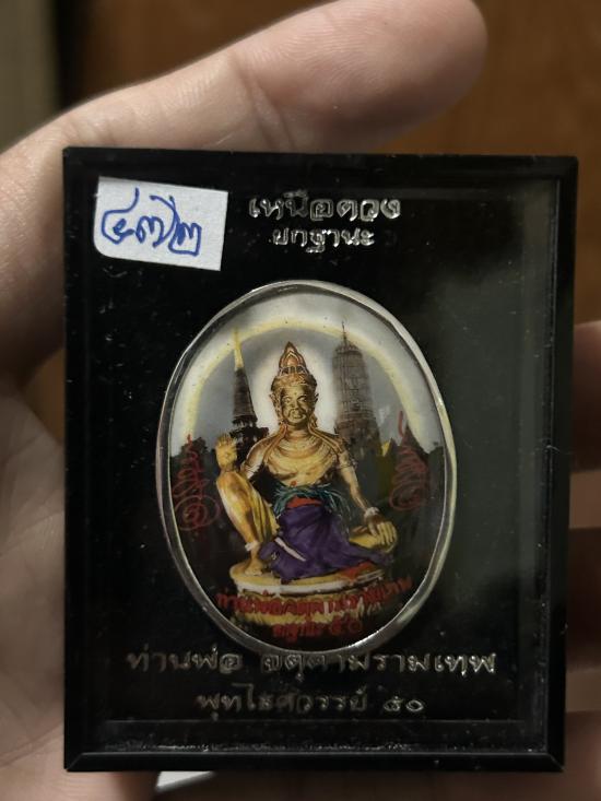 ล็อกเก็ตรุ่นนายพลเหนือดวง พิมพ์รูปไข่เลี่ยมเงิน หลังอุดผงพรายกุมาร no. 472 |