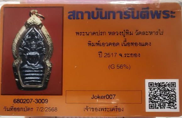 ปี2517 จ.ระยอง เลี่ยมทอง G56% พร้อมบัตรรับรองครับ