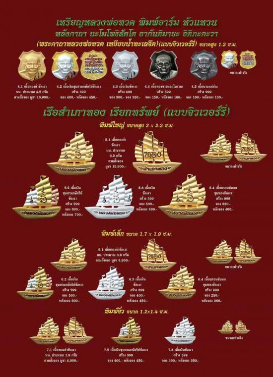 เคาะเดียวไวไว เรือสำเภาทอง เรียกทรัยพ์ หลวงพ่อทวด รุ่น 105 ปี อาจารย์ทิม แบบจิวเวอร์รี่ เนื้อบรอนท์นอกชุบทองขัดเงา พิมพ์เล็กขนาด 1.7x1.9 ซม สวยๆไม่ผ่านการใช้ครับ |