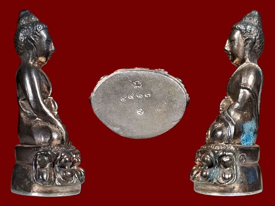 พระกริ่ง สรงน้ำ หลวงปู่คร่ำ วัดวังหว้า เนื้อนวะ ก้นเงิน หมายเลข ๔๙๑๓ |