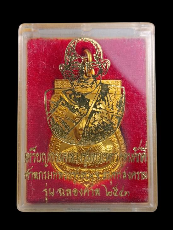 เริ่ม 100.- *** เหรียญกรมหลวงชุมพร หลังหลวงปู่ศุข รุ่น ฉลองศาล ปี 2543 กะไหล่ทอง พร้อมกล่อง |