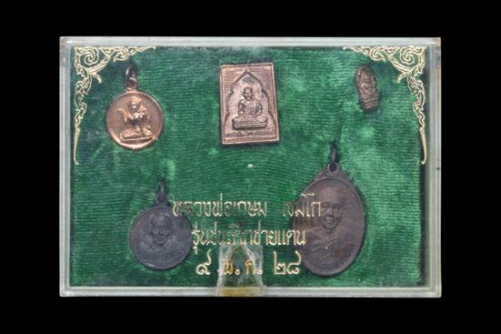 พระชุดชนะศึกชายแดน 5 องค์ ปี พ.ศ. 2528 หลวงพ่อเกษม พร้อมกล่องเดิม
