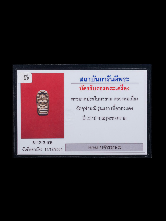 พระนาคปรกใบมะขาม หลวงพ่อเนื่อง วัดจุฬามณี (รุ่นแรก) พร้อมบัตรรับรองจากเว็บครับ ผมไม่ทราบที่ ยี่ห้อรุ่นครับ พระรังเก่า ชุดนี้ผมไปเหมาบ้านที่กรุงเทพฯมาได้มาหลายอย่าง ทยอยลงครับ วัดใจเท่าไหนเท่านั้นครับ