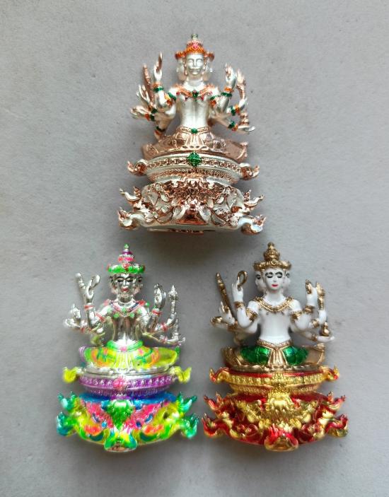 วัดใจเคาะเดียวแดงจ้า รูปหล่อพระพรหมอุดกริ่ง หลวงพ่อนพวรรณ วัดเสนานิมิต จำนวน3องค์ คละเนื้อ เคาะเดียวแดงจ้า