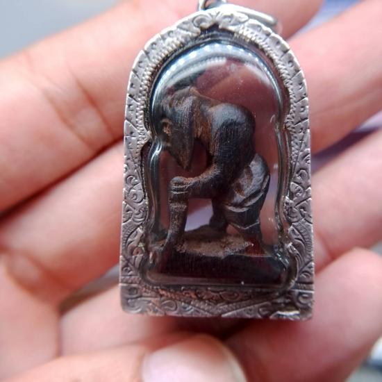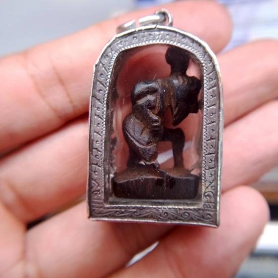 ชูชกไม้แกะหลวงปู่ทิม วัดละหารไร่ เนื้อไม้ตับเต่า เก่าเดิมๆ พร้อมตลับเงิน |