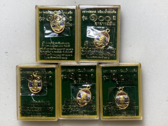 เหรียญเม็ดแตง หลวงปู่ทวด รุ่น 100 ปี อาจารย์ทิม เนื้อกะไหล่ทองลงยาลายธงชาติ สร้าง 2999 เหรียญ เคาะเดียว 5 องค์ |