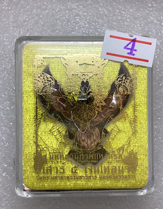 พญาครุฑเสาร์5 เงินไหลมา วัดพระมหาธาตุวรมหาวิหาร จ.นครศรีธรรมราช เนื้อทองพระนคร ปีกทองแดง พระธาตุทองขาว ขนาด 4.3 ซ.ม. ซีลเดิมยังไม่ได้แกะ |