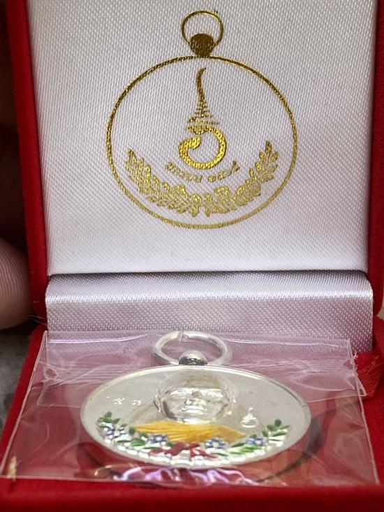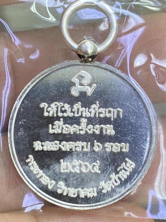 เหรียญกลมหน้าหนุ่ม เนื้อเงินลงยา เนื้อขาวสวย เลข 58 กล่อง หลวงพ่อทอง วัดบ้านไร่ |