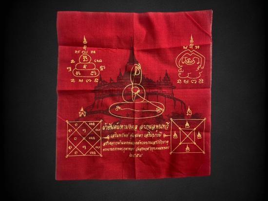 Q603.ผ้ายันต์วัดสระเกศ ราชวรวิหาร (ภูเขาทอง) รุ่นเสริมทรัพย์ คุ้มชะตา เสริมบารมี (เคาะเดียวแดง) |