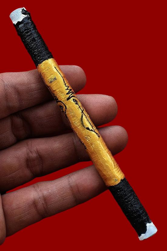 ( 3 ) ตะกรุดมหาปราบ (ระงับภัยให้ทรัพย์) ยุคแรก สร้างน้อย 324 ดอก ปี 2550 หลวงปู่นิเวศน์ วัดทุ่งกระเจ็ด จ.สุพรรณบุรี พร้อมซองรูปใบฝอยเดิมจากวัด สภาพพระตามรูปที่ลงทุกประการ (ขนาดยาว 5 นิ้ว)
