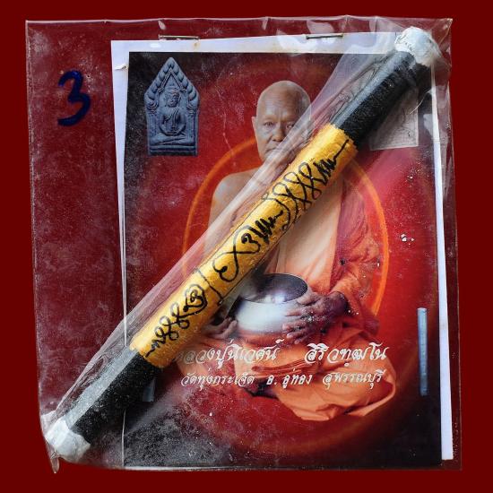 ( 3 ) ตะกรุดมหาปราบ (ระงับภัยให้ทรัพย์) ยุคแรก สร้างน้อย 324 ดอก ปี 2550 หลวงปู่นิเวศน์ วัดทุ่งกระเจ็ด จ.สุพรรณบุรี พร้อมซองรูปใบฝอยเดิมจากวัด |
