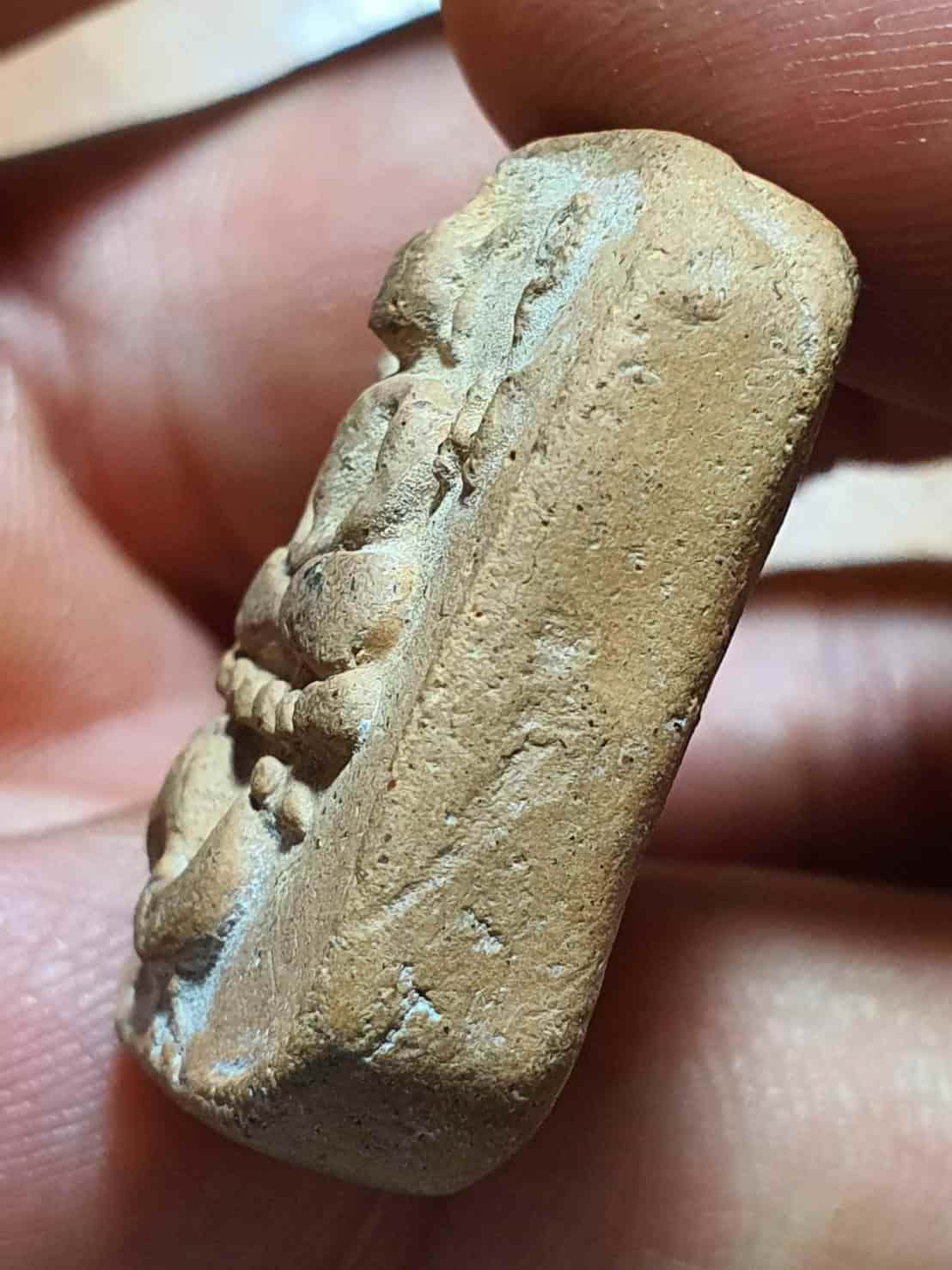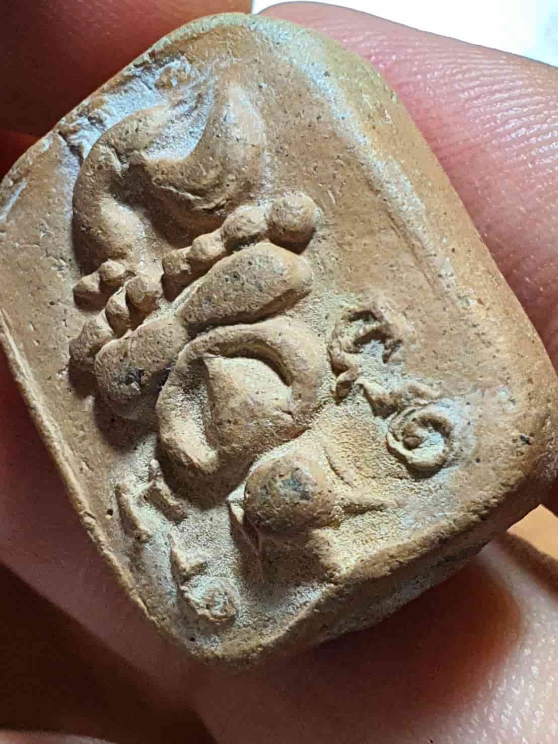 พระพิมพ์ขี่ไก่หางพวง เนื้อดินเผา ของหลวงพ่อฤาษีลิงดำ (พระมหาวีระ ถาวโร) วัดท่าซุง จังหวัดอุทัยธานี ซึ่งสร้างในยุคต้นประมาณปี พ.ศ. 2496 |