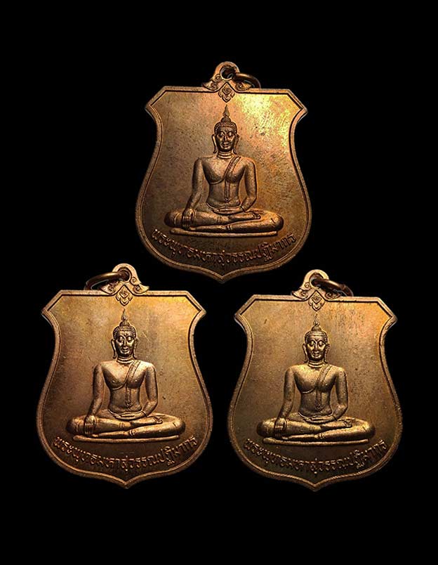เหรียญ จำนวน 3 เหรียญ หลวงพ่อทองคำหลังซุ้มเฉลิมพระเกียรติฉลอง 72 พรรษา วัดไตรมิตร ปี 42 หลวงปู่หมุนร่วมเสกพร้อมหลวงปู่ทวดวัดไตรมิตร