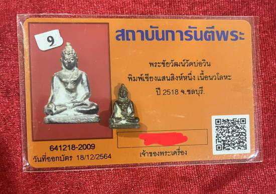 พระชัยวัฒน์ วัดบ่อวิน ปี 18 หลวงปู่ทิมวัดระหารไร่ ปลุกเสก ปี 18 เนื้อนวโลหะ พระชุดพระวัดบ่อวิน ชลบุรี มวลสารผงพุทธคุณต่างๆ, ผงพรายกุมาร หลวงปู่ทิม, จีวร, เกศาของหลวงปู่ทิม, หมอนหนุนหัว ของหลวงปู่ทิม พลอยเสก มาพร้อมบัตรรับประกันจากสถาบันการันตีพระ 1 ใบครับ |
