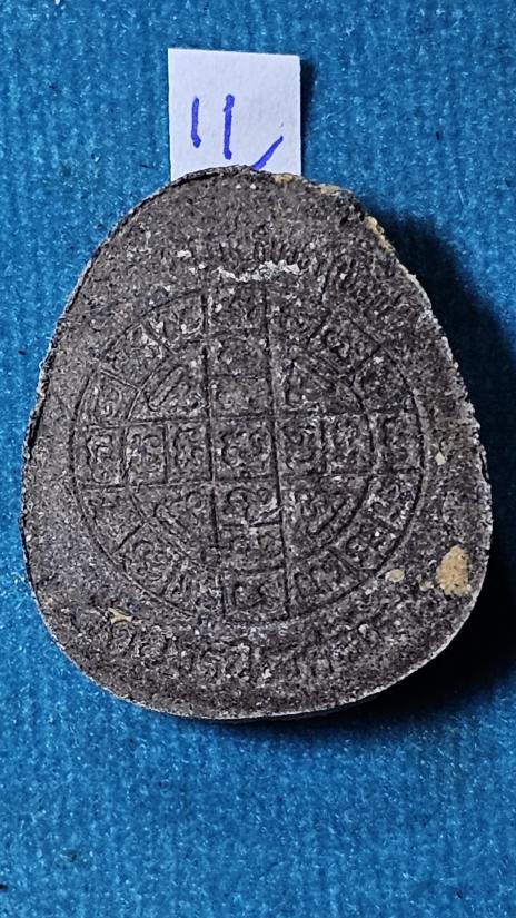 พระปิดตายันต์ดวงเล็ก เนื้อ2สี เนื้อเกสรกับเนื้อใบลาน ตะกรุดเงิน ไม่มีกล่องครับ(11) |
