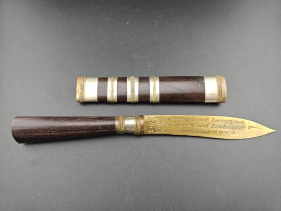มีดหมอ หลวงพ่อเหิน สำนักสงฆ์ป่าแดง จ.เพชรบูรณ์ รุ่น บูชาครู รุ่นแรก พ.ศ.2564 ใบทองเหลือง ยาวรวม 9.5 นิ้ว เลข30