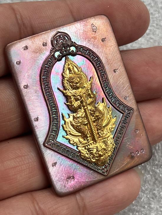 เหรียญท้าวเวสสุวรรณ รุ่นโชคดีเนื้อนวะหลังเรียบหน้ากากทองทิพย์ตอก9รอบไม่ตัดปีกกรรมการจารย์หลวงปู่จารเต็มสูตรหน้า-หลังสวยงามมีคุณค่าหมายเลข233 |