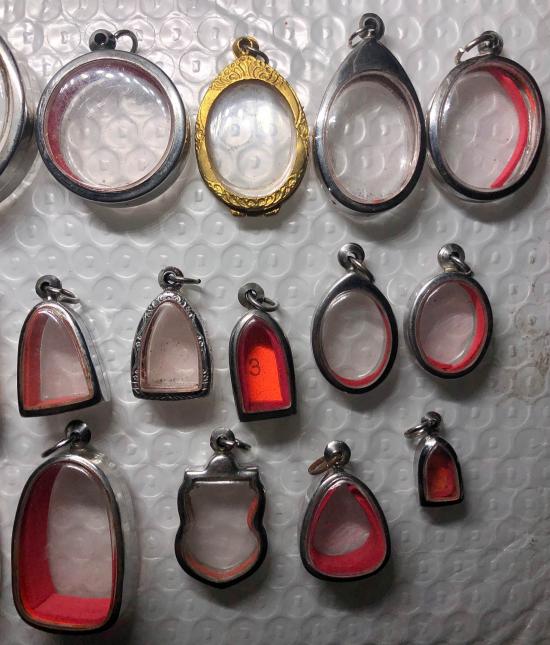 กรอบพระสแตนเลสใส่พระเครื่อง มือสอง คละพิมพ์ทรง 21 ใบ |