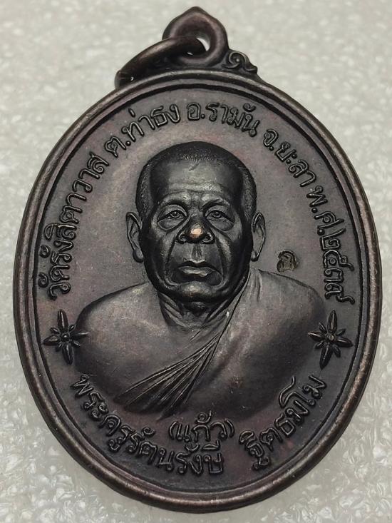 เคาะเดียวแดง.....เหรียญรุ่นแรกหลวงพ่อแก้ว วัดรังสิตาวาส (ซาเมาะ) จ.ยะลา เนื้อทองแดง พิมพ์ใหญ่ ปี2539 |
