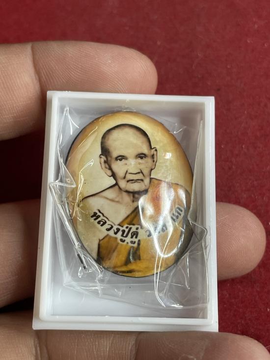 หลวงปู่ดู่ วัดสะแก ฉากสีไข่ไก่ ซีเปีย พิมพ์รูปไข่ หลังยันต์ เนื้อตะกั่ว ปี 53 |