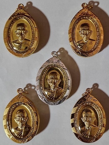ยกชุด 5 องค์ เหรียญหลวงพ่อรวย รุ่น รวย รวย เฮง เฮง ปี 2560 เลี่ยมกรอบทองไมครอนและกรอบเงินไมครอน แท้ ทัน หลวงพ่อรวย |