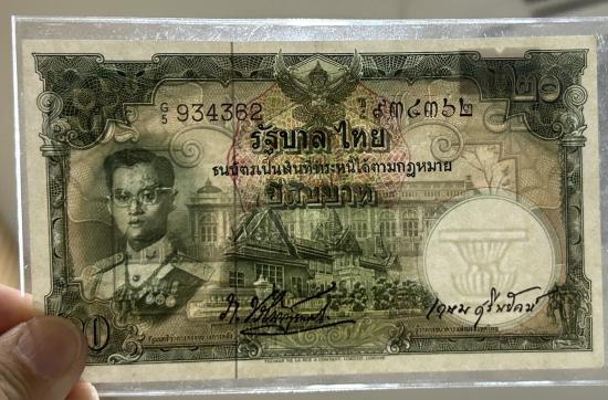 ธนบัตร 20 บาท ร.9 โทมัส ลายย้ำพาน เลข9หน้า สวยๆ ไม่ผ่านใช้งาน