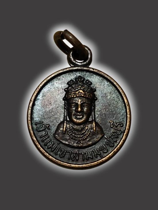 A3737.เหรียญจิ๋วเจ้าแม่เขาสามมุข(เจ้าแม่ทับทิม) จ.ชลบุรี เนื้องทองแดงรมดำ เคาะเดียวเเดง |