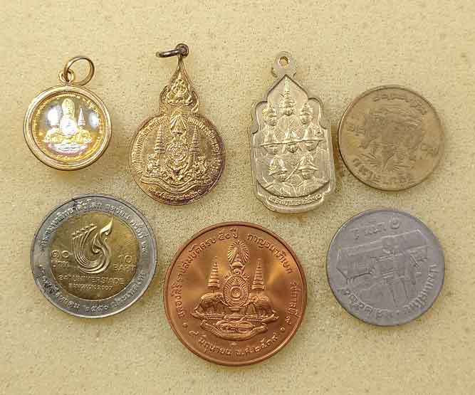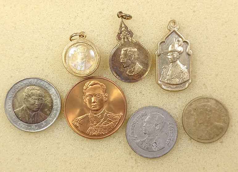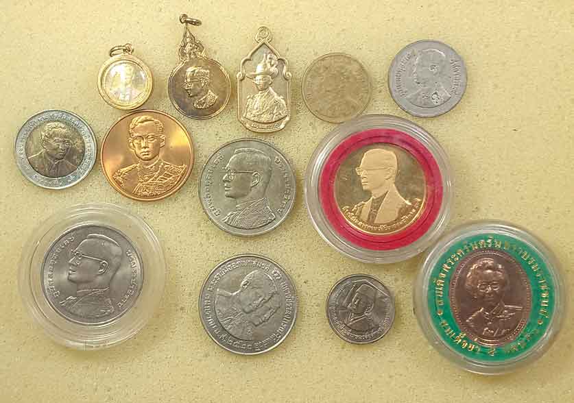 เหรียญร.9 10 เหรียญ + เหรียญร.10 + เหรียญสมเด็จย่า + เหรียญเจ้าฟ้าหญิงจุฬาภรณ์