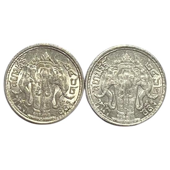 2เหรียญ!! เหรียญกษาปณ์ 1 สลึง รัชกาลที่ 6 มหาวชิราวุธ หลังช้างสามเศียร ปี 2462 ผ่านการล้าง |