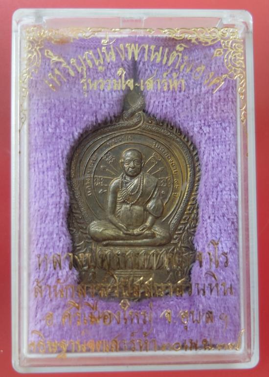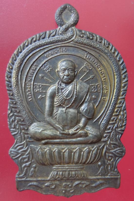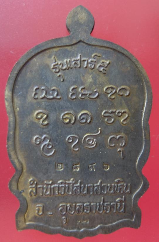เหรียญนั่งพาน รวมใจ-เสาร์ห้า หลวงปู่พรหมา เขมจาโร ปี 2537 เนื้อนวะโลหะ
