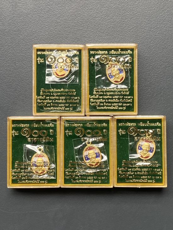 เม็ดแตงหลวงปู่ทวด หลังอาจารย์ทิม รุ่น100ปี เนื้อชุบทองลงยาสีธงชาติ 5องค์ |