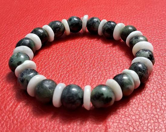 ประคำข้อมือหยกเขียวเข้ม ขนาด 10 มิล +ตัวคั่นหยกขาว เป็นหยกพม่าแท้ 100 % ร้อยด้วยเอ็นยืด ขนาดฟรีไซด์ (กท.35) |