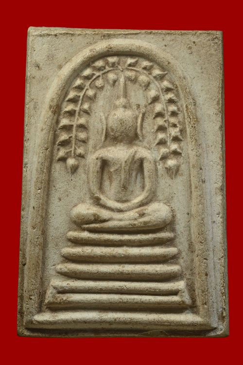 สมเด็จปรกโพธิ์ย้อย ฐานร่อง หลวงพ่อกวย วัดโฆสิตาราม ปี 2512 หลังยันต์จารมือ |