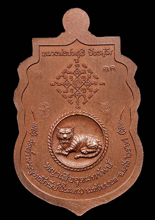 มาแรง 1ใน 90 เหรียญเสมาพญาเสืออุดมทรัพย์ พระอาจารย์ประสูติ (หลวงพ่อประสูติ) วัดในเตา ตรัง เนื้อทองแดงซาตินลงยาแดง เพ้นท์ขอบพญานาค จีวรทอง เลขสวยๆNO.31 สวยมากครับ |