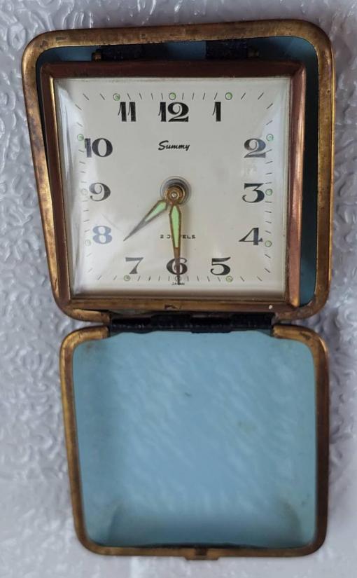 ***วัดใจ***นาฬิกาไขลาน (Made in Japan) นาฬิกาปลุกเดินทางแบบพับได้วินเทจ เรโทร ตลับแป้ง |