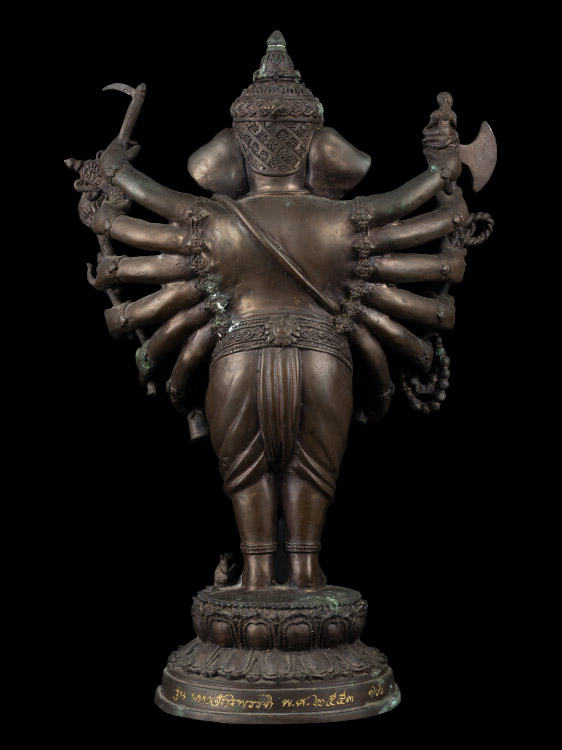 **พระวีระคณปติ (พระพิฆเนศวร์ปาง 16 กร) 15 นิ้วเนื้อโลหะรมมันปู [หมายเลข 166]