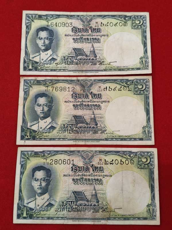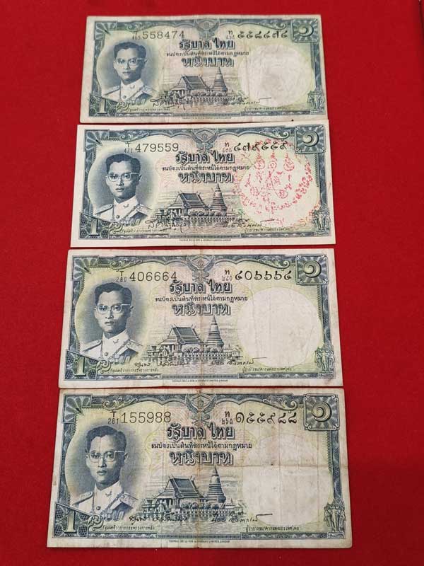 ธนบัตร 1 บาท ร.9 สภาพผ่านใช้งาน รวม 7 ใบ