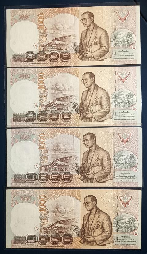 เปิดให้แลก ธนบัตร 1,000 บาท ร.9 แบบ 15 จำนวน 4 ใบ ผ่านใช้ 2 ใบ ไม่ผ่านใช้ 2 ใบ (UNC 9261589,4447447) ในชุดมี 9หน้า9หลัง 3 ใบ เคาะเดียวค่าจัดส่ง