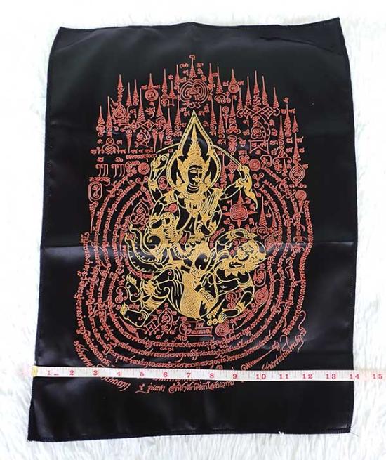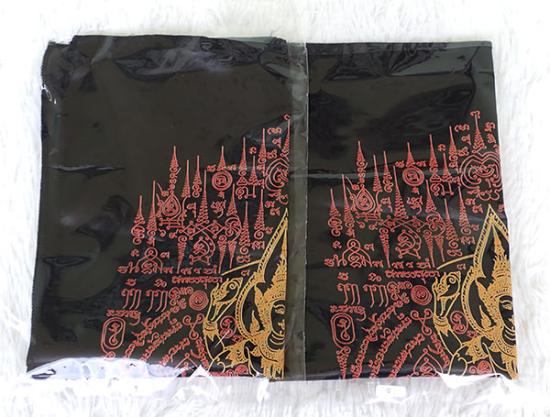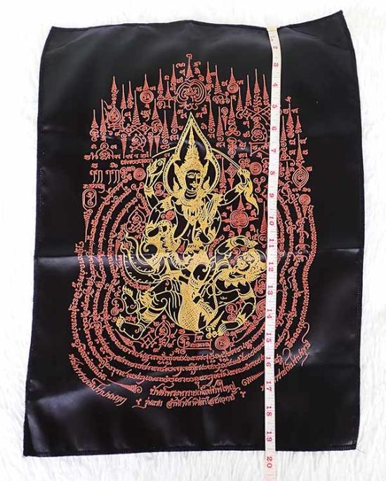 $วัดใจทีเดียว 2 ผืนค่ะ ผ้ายันต์พระนารายณ์ ปรานนทก รุ่นแรก (พระนารายณ์ ปราบทุกข์) หลวงพ่อเพ็ชร ปริปุณโณ วัดประดู่ทรงธรรม จ.พระนครศรีอยุธยา ผ้ายันต์กรรมการ สีดำ สกรีน 2 สี ผ้าเนื้อมันเย็บขอบ ขนาด A3 $ |