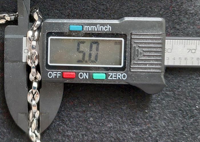 สร้อยสแตนเลสลายเมล็ดกาแฟ ยาว 26 นื้ว พร้อมสปริงก้ามปูสแตนเลสหมุนได้ เมล็ดกาแฟกว้าง 5 มม. หนา 2.4 มม.